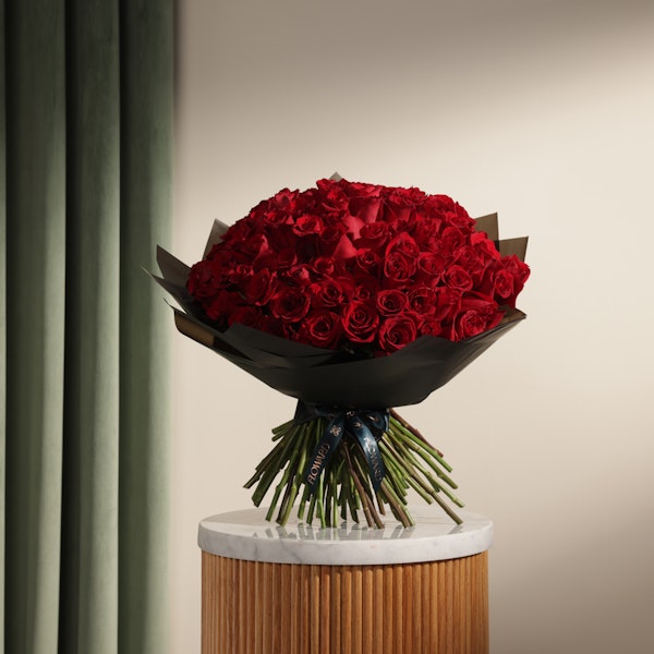 The 100 Red Rose Showstopper Bouquet is a grand and extravagant display of love and affection. With 100 long-stemmed, vibrant red roses, this bouquet is sure to make a statement and leave a lasting impression.