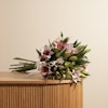 £ 175Gift the magic of elegance with our exclusive Pink Lily bouquet, enveloped in a luxurious cream wrap for an unforgettable look. Each delicate bloom tells a story, making it a very unique flower bouquet perfect for special occasions. This is more than just flowers; it's a special gift designed to leave lasting memories. Ideal for marking life’s cherished moments, this stunning bouquet radiates sophistication and grace. Buy now to surprise someone with a touch of floral artistry they’ll never forget!
