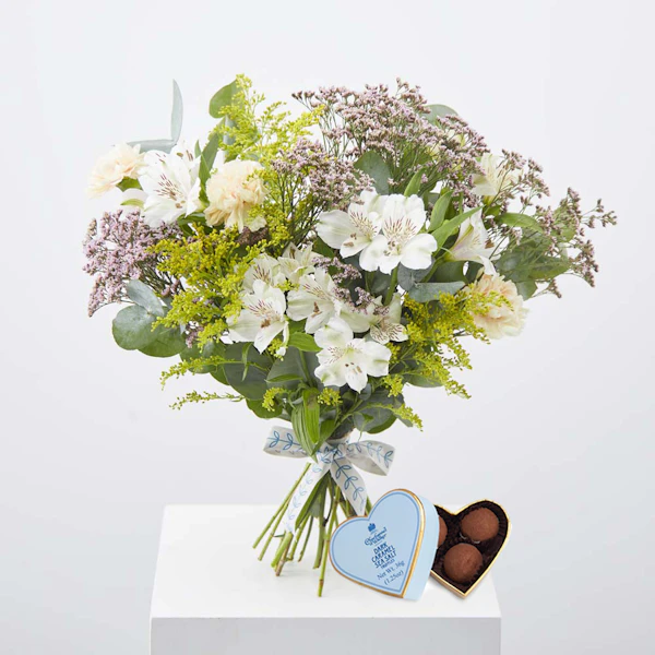 £ 65Perfect your floristry skills with our at-home DIY letterbox and create your beautiful arrangement to be proud of. Add a little sunshine to your home with these brightly colored flowers. A perfect token of your affection, love, and care. This letterbox comes with a sweet heart-shaped box for your loved one as a spontaneous gift or to mark a special occasion. With three delightful dark chocolate truffles with caramel and sea salt centers, these chocolates will truly tickle your taste buds and leave you feeling sweet inside. Please note that flowers may arrive in the bud and bloom over time.