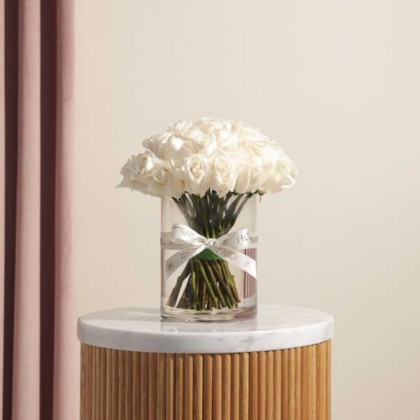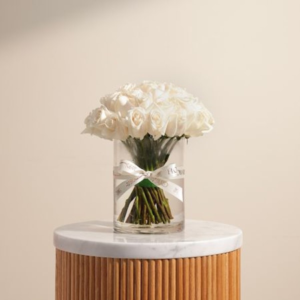 Enhance any space with our Luxury Roses Vase, featuring elegant white roses arranged in a sleek cylinder glass vase. This sophisticated vase adds a touch of timeless beauty to any room, making it an ideal gift for any occasion. The classic white roses and clear glass combine for a refined look that’s perfect for celebrations, anniversaries, or simply brightening someone’s day. Make your moments unforgettable with this exquisite arrangement. Buy now and bring a touch of luxury and grace into your home or the home of someone special.