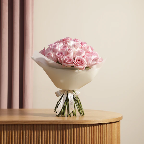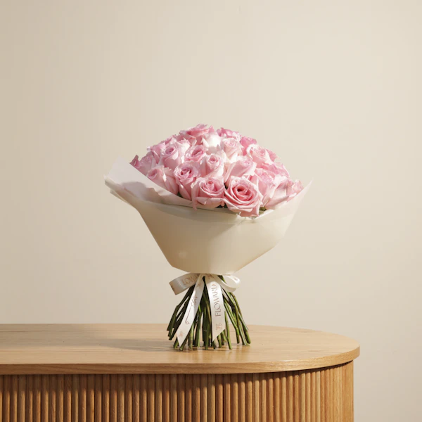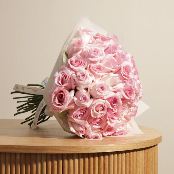Discover the elegance of our Luxury Roses Bouquet, featuring vibrant Light Pink roses wrapped in a chic cream wrap. This stunning bouquet is perfect for making any occasion special, from anniversaries to celebrations. The bold Light Pink roses combined with the soft cream wrap create a striking and sophisticated look. Ideal for expressing love, appreciation, or admiration, this luxurious arrangement is sure to impress. Buy now and add a touch of elegance and charm to your special moments with this exquisite bouquet.