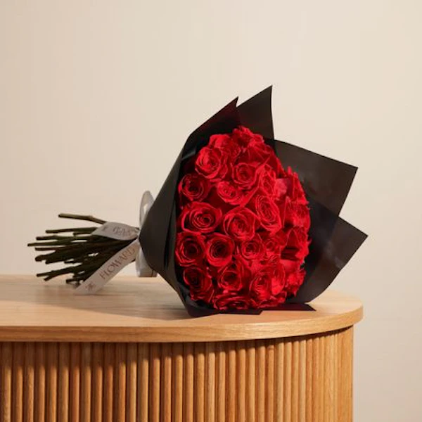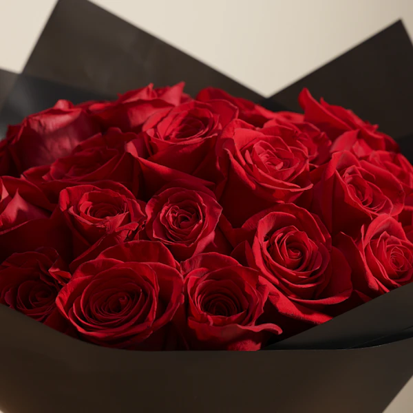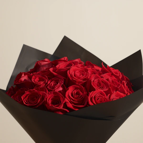 Make your gifting unforgettable with this beautifully arranged red roses bouquet, wrapped in a delicate black wrap. Perfect for expressing love and admiration, these fresh red roses are an ideal gift for someone special. Whether it's for a celebration or just to brighten their day, this bouquet makes a timeless and elegant gift. The vibrant red roses paired with the charming black wrap add a touch of romance to any moment. Don't miss out on this thoughtful gesture—buy now and surprise your loved one with the perfect gift!
