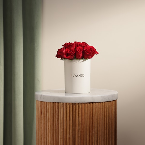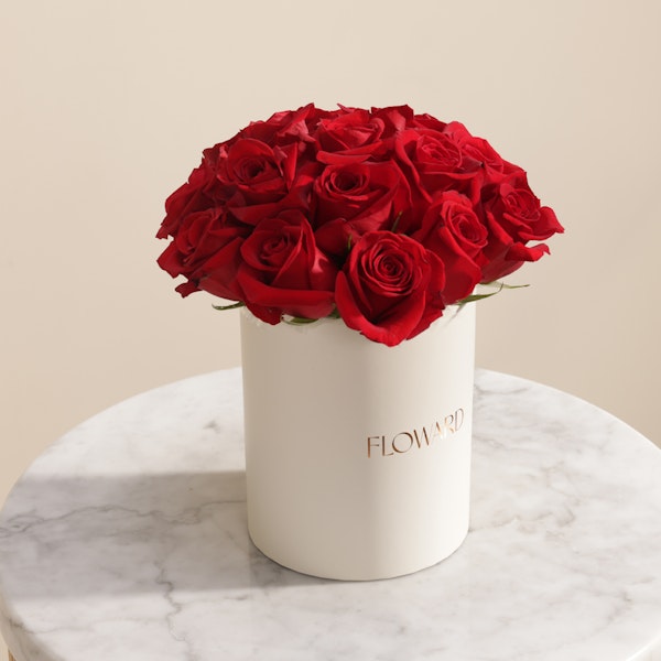 Classic. Bold. Undeniably romantic. This arrangement of deep red roses is a timeless symbol of love, passion, and meaningful moments. Set in a sleek Floward cream cylinder box, each rose opens like a promise—rich in color, emotion, and intention.Perfect for romantic gestures, heartfelt apologies, or simply to say “I’m thinking of you,” this box carries depth and sincerity in every petal. Its clean and minimal presentation allows the beauty of the roses to take center stage, making it an unforgettable gift.A piece that speaks louder than words, designed to linger in memory and heart.Because love deserves nothing less than the most powerful bloom.