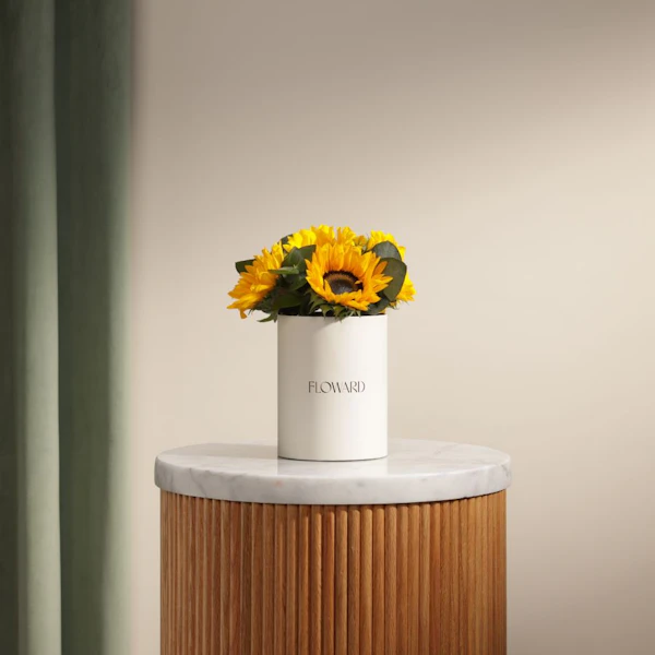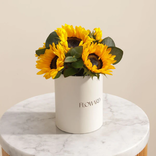 Gift your loved one a gentle burst of happiness designed to brighten their day with our Soft Sunshine flower box. Featuring a delicate arrangement of cheerful sunflowers in a charming cream cylinder box, this gift captures the warmth of sunlight in a compact, elegant form. Whether it’s a sweet surprise, a thank-you gesture, or a simple way to say you’re thinking of them, this little box brings joy in the most heartfelt way. The sunflowers’ golden glow paired with the soft cream hue makes it a delightful addition to any space. Gift this ray of sunshine today and let someone know how much they mean to you.