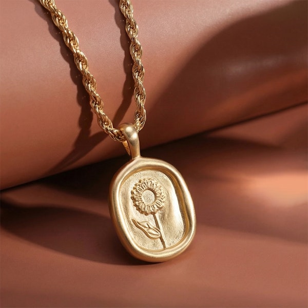 Daisy Gold Tone Sunflower Women's Necklace | Classic Heart Bouquet
