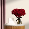 A graceful pairing that speaks in soft, meaningful details, the Daisy gold-tone sunflower necklace complements the classic heart bouquet with effortless charm. The warm glow of the necklace adds a refined touch, while the rich red roses create an emotional statement, coming together as a gift filled with elegance, warmth, and heartfelt sentiment.